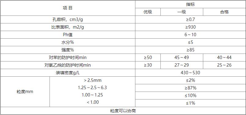 首頁 > 產品知識 防護專用活性炭 字號 + - 本品采用先進生產工藝設備和特殊的工藝條件精制而成的特種浸漬活性炭,外觀為暗黑色柱狀顆粒,具有耐磨強度高,外狀規則,粒度均勻等優點,特別針對不同的應用場所,分別具有較強的催化吸附作用。防護面具專用活性炭,通過生產工藝的孔徑、孔容積控制,提高吸附劑的選擇性、吸附量,使其具有:1.吸附量大、對載入藥品附著力強的特點;2.耐磨損的特點;3.防護能力衰減緩慢的特點。椰殼防護活性炭技術指標應符合下表要求:煤質柱狀防護活性炭技術指標應符合下表要求 適用于各種過濾式防護面具、礦用過濾式自救器干燥劑的載體及濾毒通風裝置。不僅適用于個人防護,還適用于群體防護,同時也話用干各種復雜環境下的氣相吸附,從而實現對相關人吊呼吸系統的保護。
