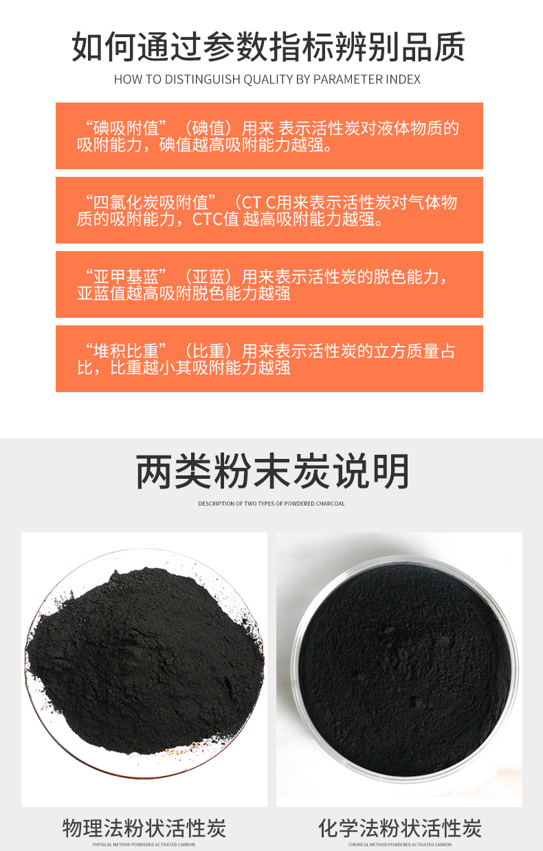 粉狀活性炭以優(yōu)質(zhì)木炭為原料,經(jīng)特殊生產(chǎn)工藝精制而成,有物理法、化學法兩種。經(jīng)水蒸氣活化后,精制處理,粉碎而成。本品外觀為黑色粉末狀,在一般溶液下均不溶解。無臭無味,具有表面積大吸附為強、純度高、濾速快、質(zhì)量穩(wěn)定,具有絮凝效應和助濾效應等特點。廣泛適用于食品、醫(yī)藥、味精化工等產(chǎn)品的脫色、除雜精制。也可以用于水的凈化處理。