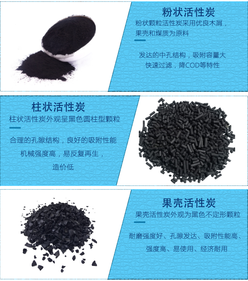 顆粒活性炭有兩種,分別分為煤質(zhì)顆粒活性炭和木質(zhì)顆粒活性炭,煤顆粒活性炭以無煙煤為原料,木質(zhì)顆粒活性炭以果殼為原料;柱狀活性炭分為煤質(zhì)柱狀活性炭和木質(zhì)柱狀活性炭,煤質(zhì)柱狀活性炭以無煙煤為原料,木質(zhì)柱狀活性炭以木屑和椰子殼為原料。這兩種活性炭在原料的選擇上略有不同。