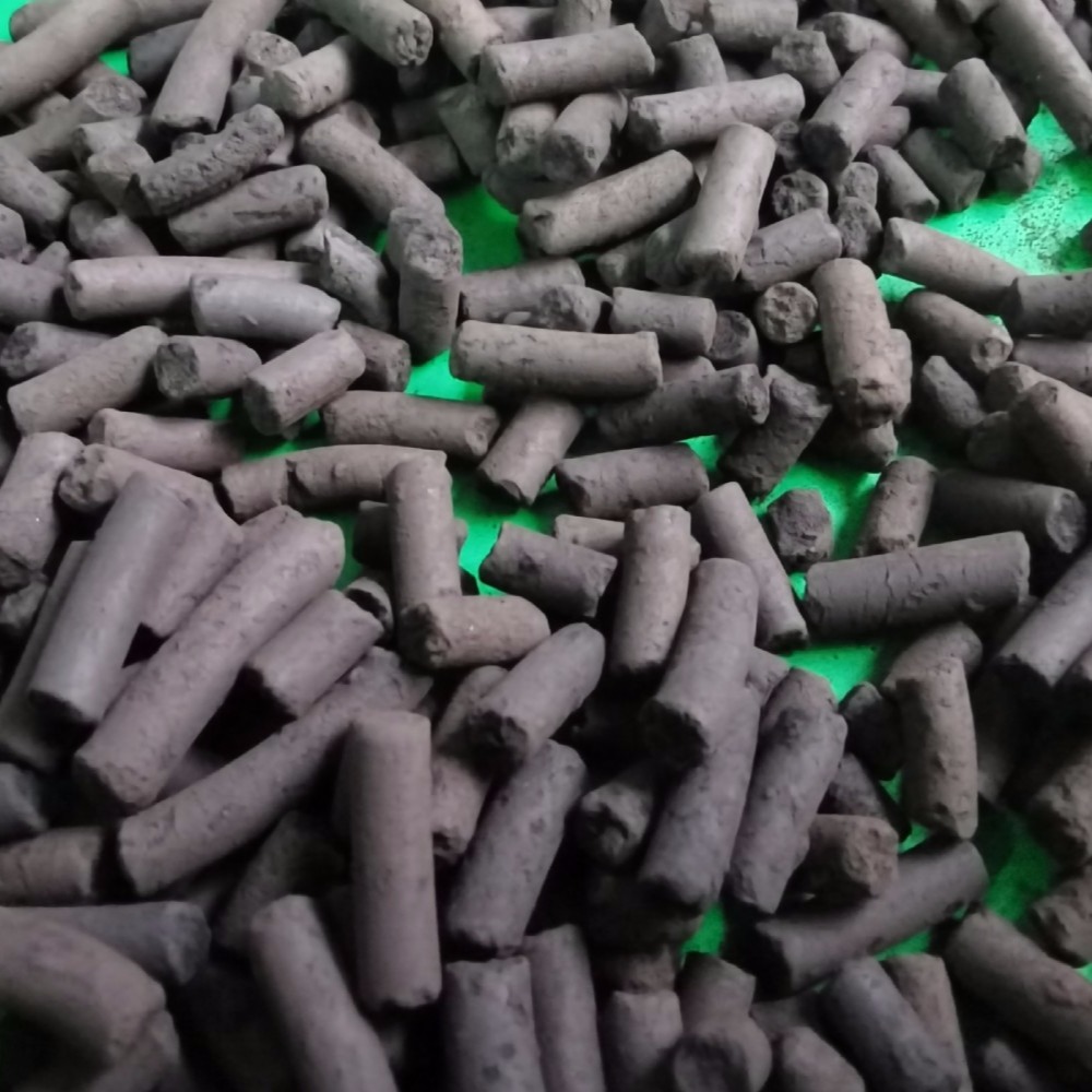 (2)混捏成型工序 混捏成型工序指對于柱狀活性炭生產而言。捏合即是將合格煤粉與定量黏合劑及添加劑在一定溫度下充分攪拌以形成均勻的膏狀物。混捏好的膏狀物在一定壓力下經擠壓制成一定直徑的生炭條,稱成型。目前國內普遍采用的捏合機為 Z 式攪拌機,成型設備則常采用二柱或四柱液壓機。